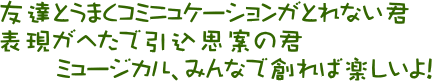 ミュージカル、コーラス、演劇などを共に創りあげる体験と