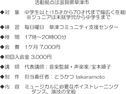 (公演前などには練習日、練習時間が増えることがあります) |